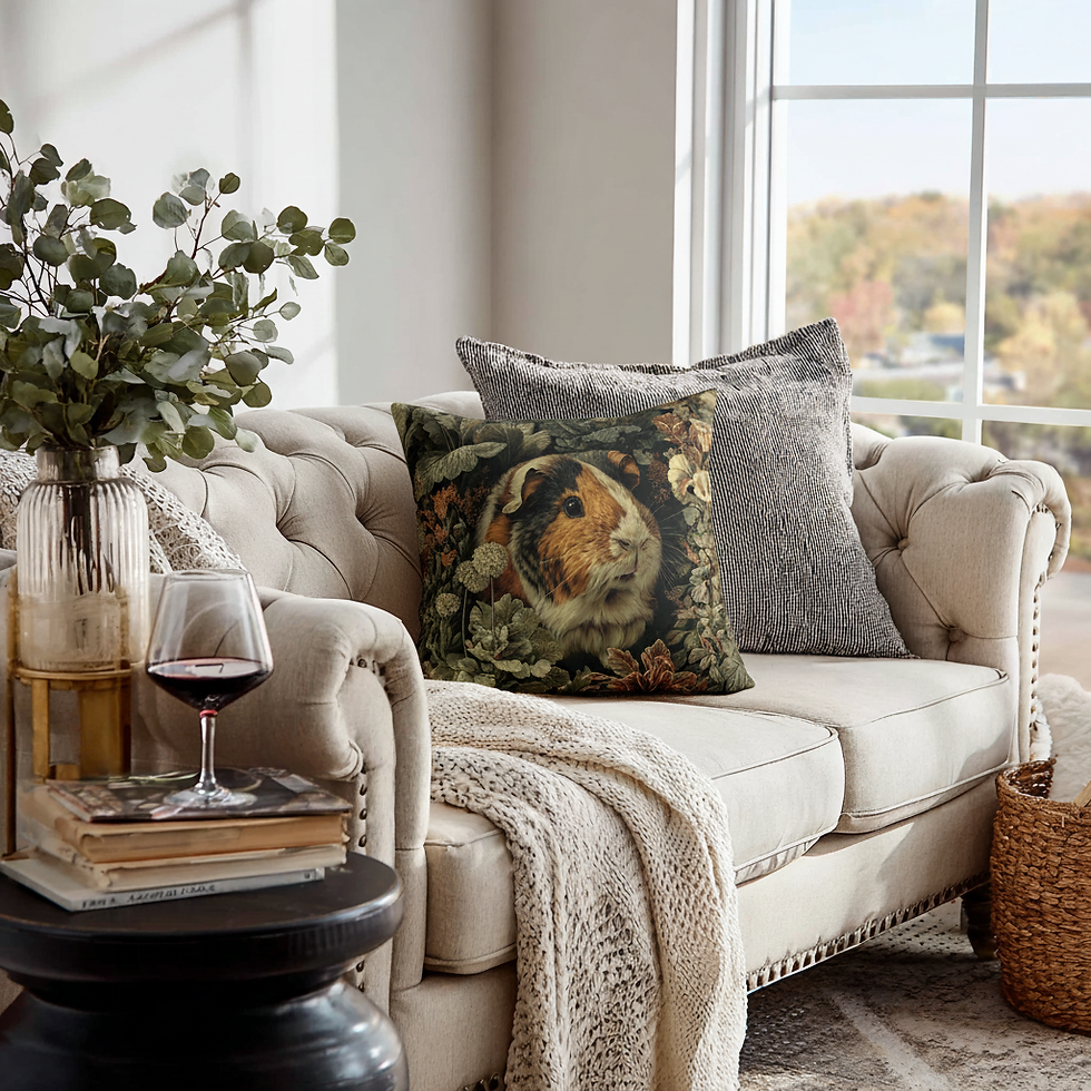Guinea Pig Tapestry Pillow – Vintage Floral Art Cushion for Animal Love