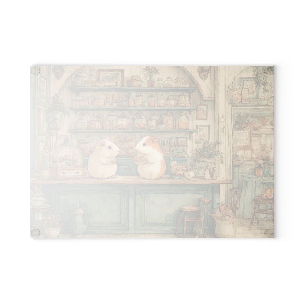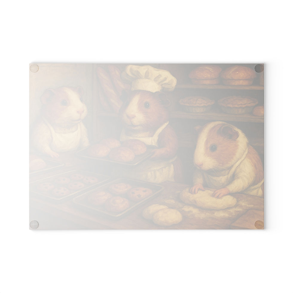 Guinea Pig Bakery Glass Cutting Board - Whimsical Kitchen Décor Tempered Glass